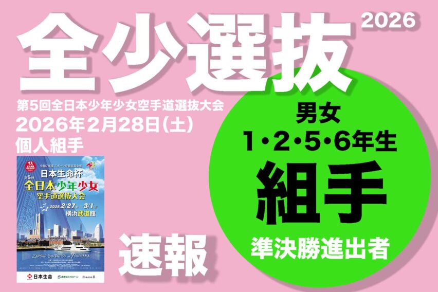 「第5回全日本少年少女空手道選抜大会」”全少選抜”1日目が、2月28日(土)横浜武道館にて開催。個人形(全学年1、2、3、4、5、6年生)/団体形競技 結果。