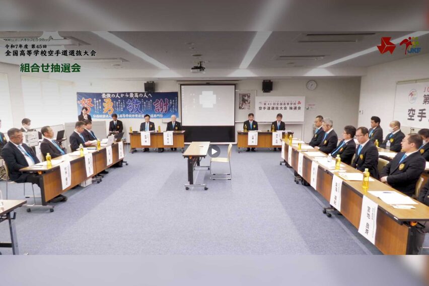 2月15日(日)、第45回全国高等学校空手道選抜大会 組み合わせ抽選会 が長野県のエア・ウォーターアリーナ松本にて行われました。組合せ抽選会の模様は全空連YouTube (JKF CHANNEL)でライブ配信されました。