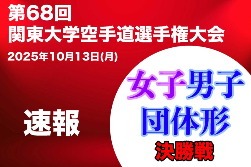 おしらせ 「第68回関東大学空手道選手権大会」が CHAMP YouTube (KARATE WORLD TV) でライブ配信されます! 2025年10月13日(月・祝)、第68回関東大学空手道選手権大会 が行われます。男女団体組手、男子団体組手(3人制)、男女団体形の種目で関東最強の大学を決める戦いです! 2025年10月08日 2025年10月13日 おしらせ
