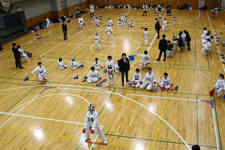 組手競技は年齢別に3コートで行われました