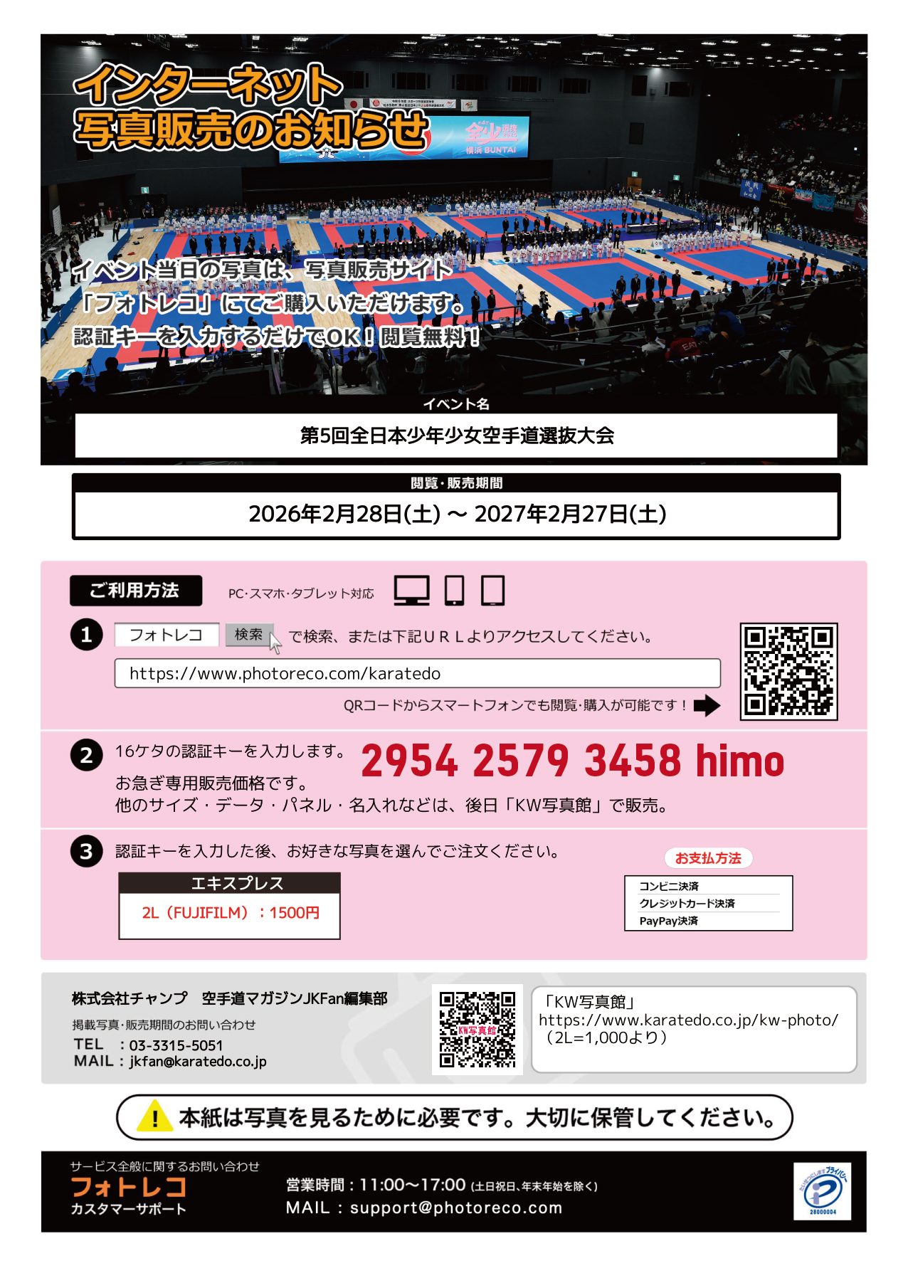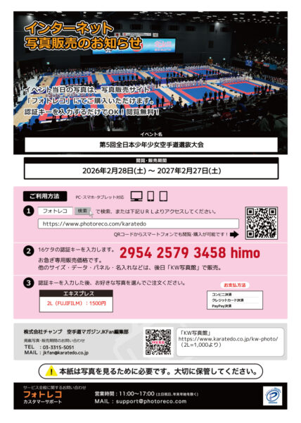 ⚫︎ 3月末頃から「KARATE WORLD(KW)写真館」にて、同じ2L写真を1000円で購入できます。