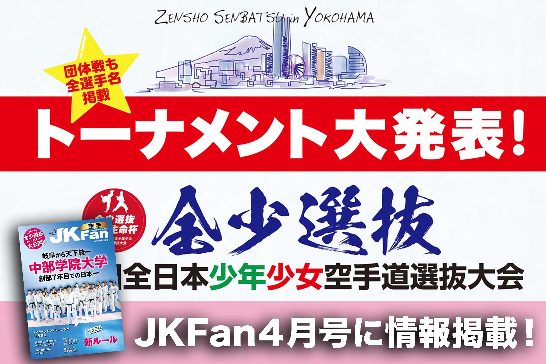 2月27日(金)〜3月1日(日)の3日間、横浜武道館で開催される「第5回全日本少年少女空手道選抜大会」”全少選抜”にて、