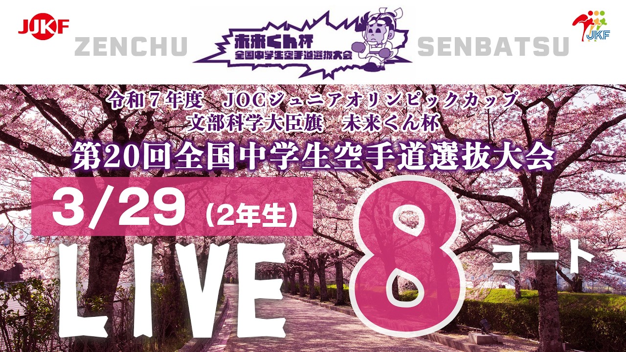 【3月29日配信!】8コート 未来くん杯 第20回全国中学生空手道選抜大会(2年生)