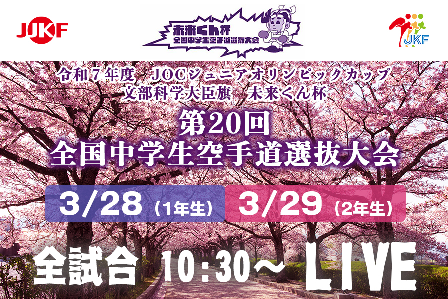 【全中選抜2026】「未来くん杯 第20回全国中学生空手道選抜大会」が 全空連YouTube (JKF CHANNEL) でライブ配信されます!