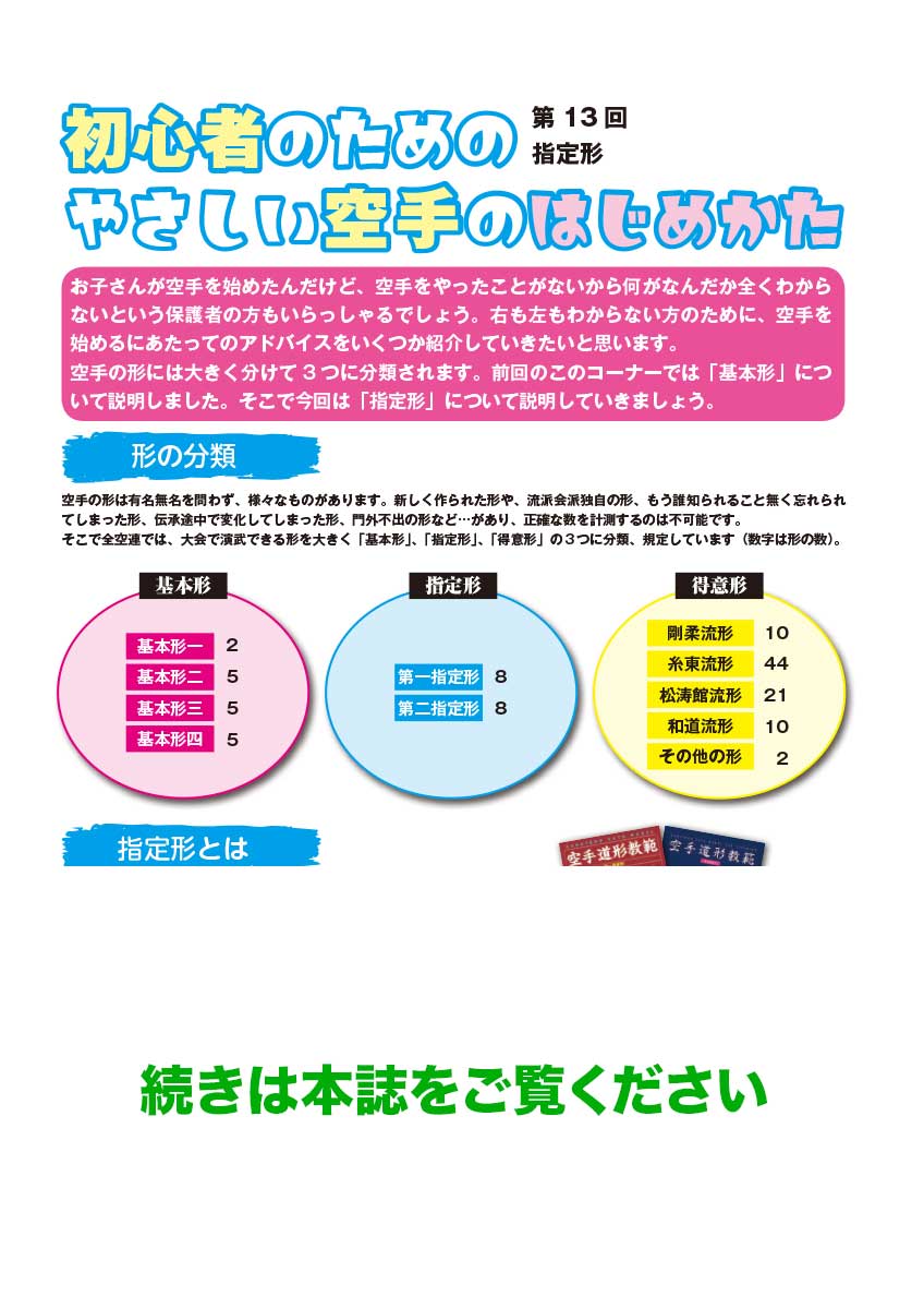 基本形編(空手の基本となる全ての要素が含まれている)の次は、『第一指定形編』です!