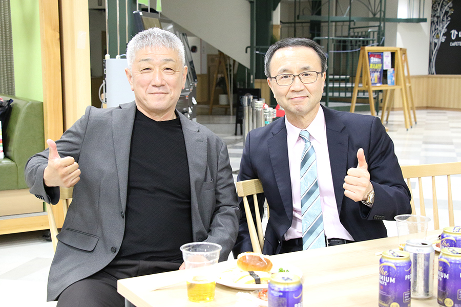 愛知県空手道連盟理事長の伊藤勝治先生(左)と林先生
