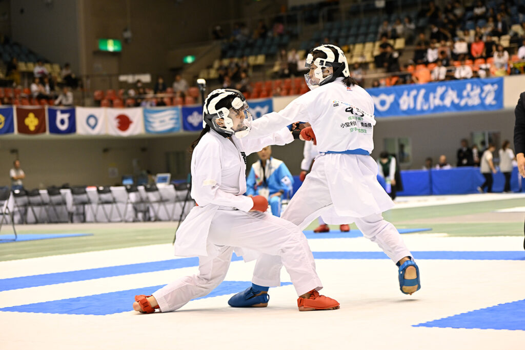 成年女子組手優勝の崎山紬(左・香川)