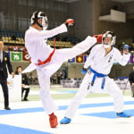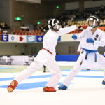 - 組手団体戦決勝副将戦、上段蹴りを決めた東京の阿部遥佑