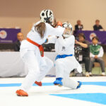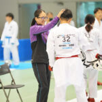 - 組手団体戦決勝次鋒戦、中段突きを決めた京都の武田桜花