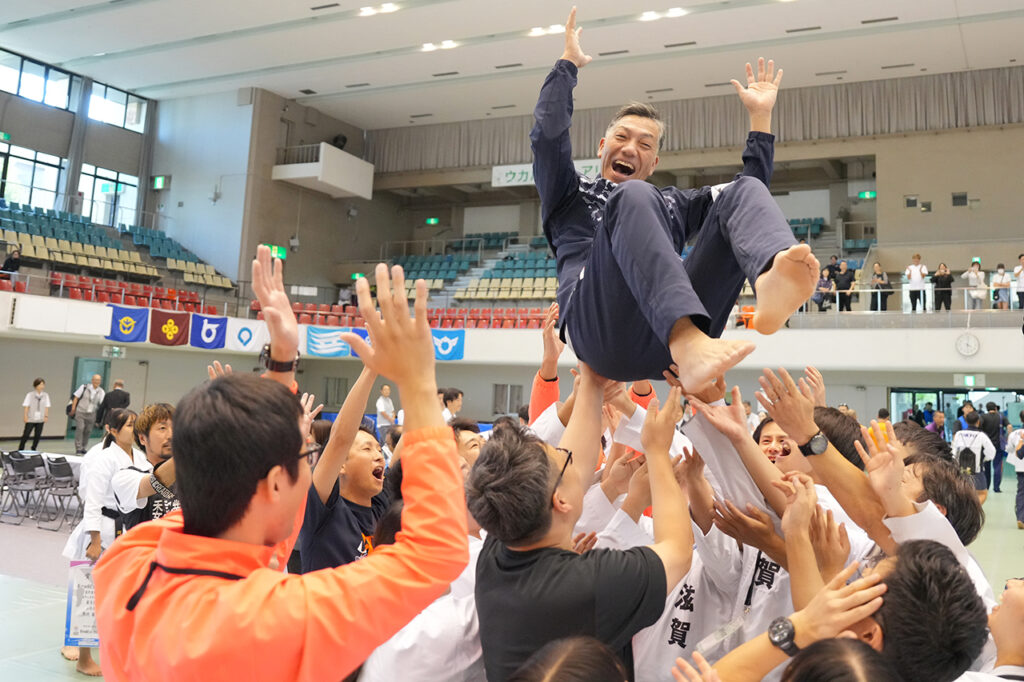 胴上げをされた滋賀の山本監督