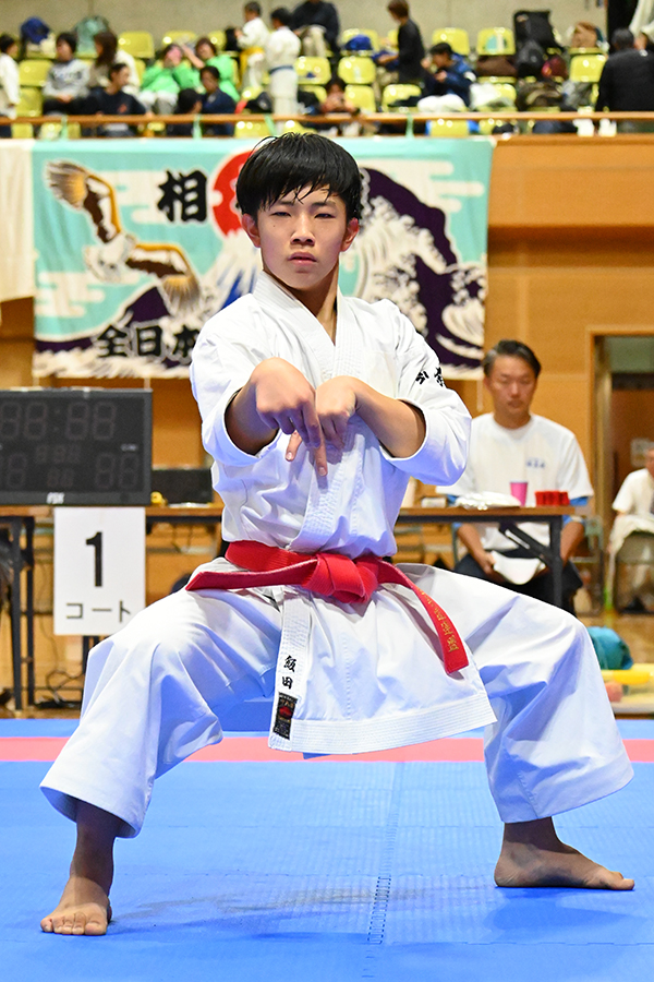 中学生男子形優勝の飯田演斗選手(拳勝館座間)