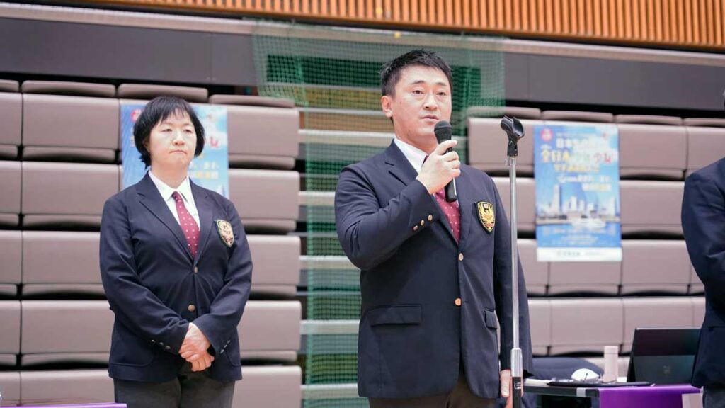 山田健剛大会審判長の競技開始宣言