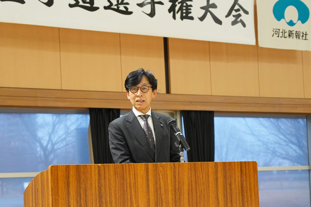 一力雅彦・河北新報社代表取締役社長の祝辞(常務取締役・石川雄康氏代読)