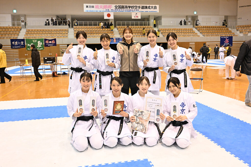 女子団体組手準優勝の城南学園(大阪)