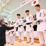 (写真集あり・写真販売のお知らせ)第39回桃太郎杯全国高等学校空手道錬成大会(一年生大会)結果 トピックス女子団体組手優勝のおかやま山陽(岡山) X Facebook LINE Pinterest 2026年01月07日2026年01月08日 第39回桃太郎杯全国高等学校空手道錬成大会(一年生大会)の写真 クリックしていただくと画像が拡大されます。 女子団体組手決勝、上段突きで攻めるおかやま山陽副将の海沼芽音 男子団体組手決勝、上段突きで攻める浪速大将の船戸仁 浪速団体メンバー 浪速の皆さん 女子個人組手優勝の山本はな(御殿場西) 男子個人組手決勝、上段突きを決めた村田蒼磨(山口県鴻城) 御殿場西の皆さん 帝京の皆さん 神港学園女子 京都精華学園男子 前へ 12