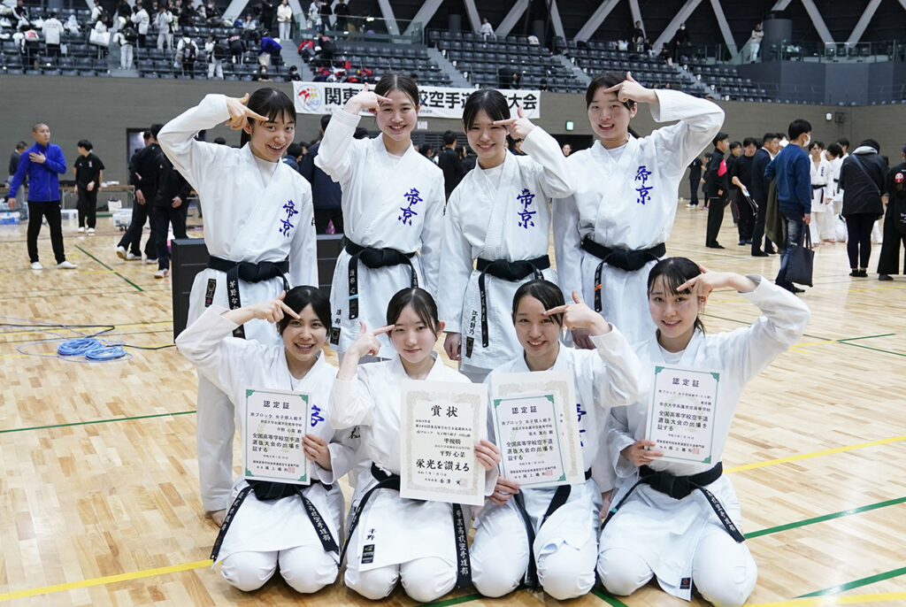 南関東ブロック女子団体組手(5人制)優勝の拓殖大学紅陵(千葉)
