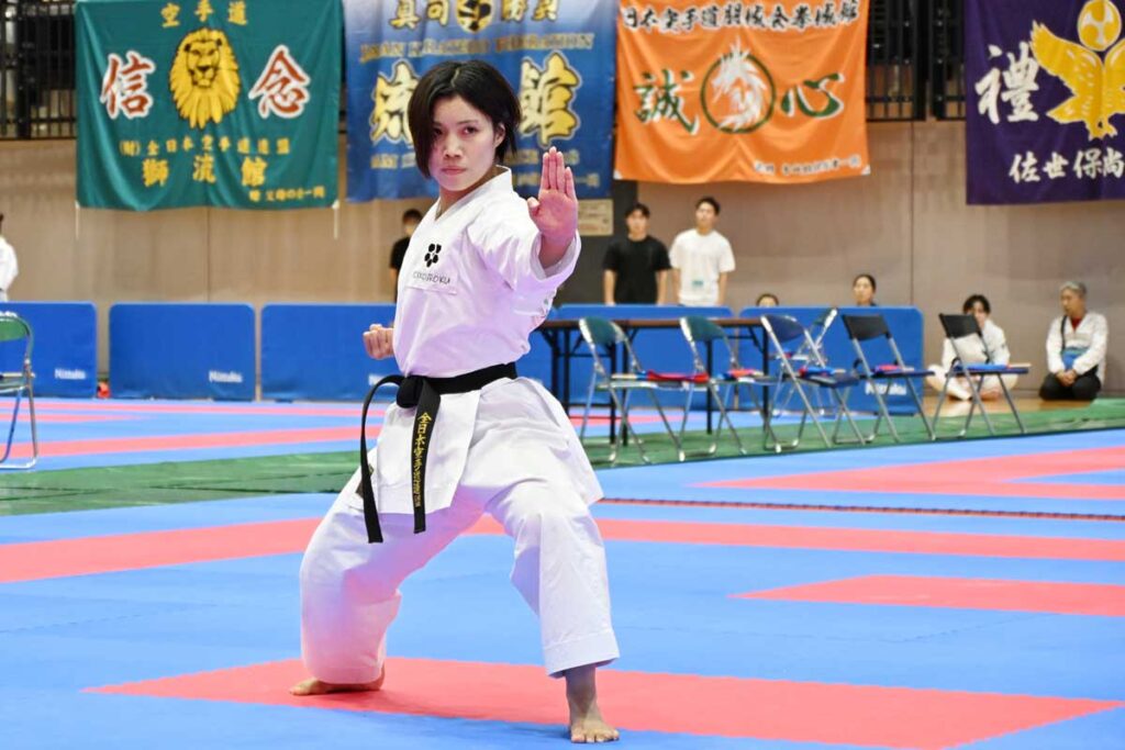 大会アンバサダーの石橋咲織さん(元全空連ナショナルチーム選手)による記念演武