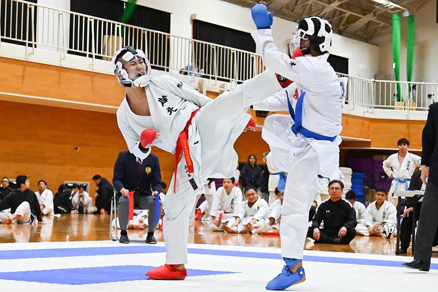 男子組手優勝の旭竜我選手(入間、右)