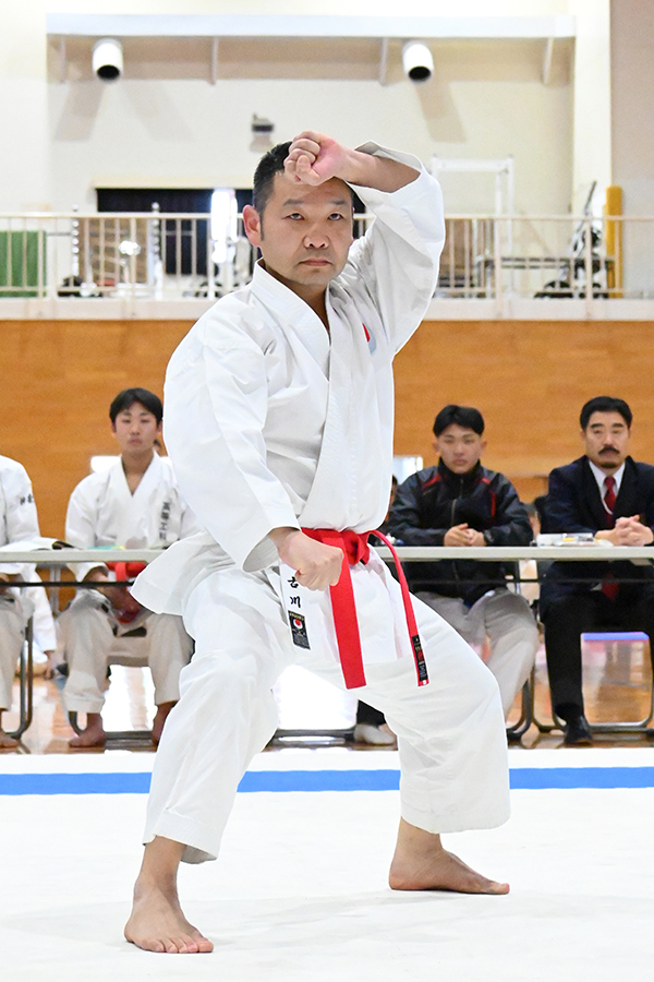 マスターズ男子(40歳以上)形優勝の古川雅大選手(防大)