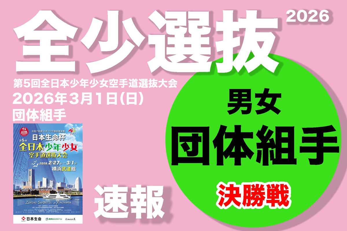 ★全少選抜2026 小学生の夢舞台★勝ち上がり速報・ライブ配信情報などまとめました2026年2月27日(金)〜3月1日(日)の3日間、横浜武道館で「第5回全日本少年少女空手道選抜大会」”全少選抜”が開催。学年別の男女形組手個人戦・団体戦28...