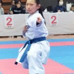 - 組手-小学生1年生女子の部-優勝の岡本莉子選手(青)