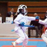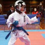 - 組手-小学6年生の部-優勝の佐竹凛仁選手(青)