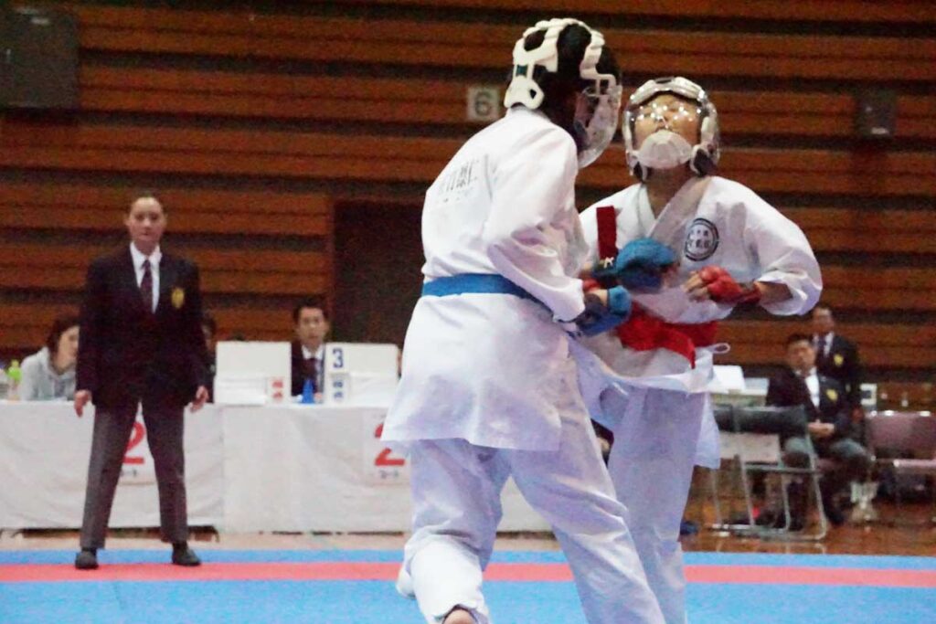 組手-小学6年生の部-優勝の佐竹凛仁選手(青)