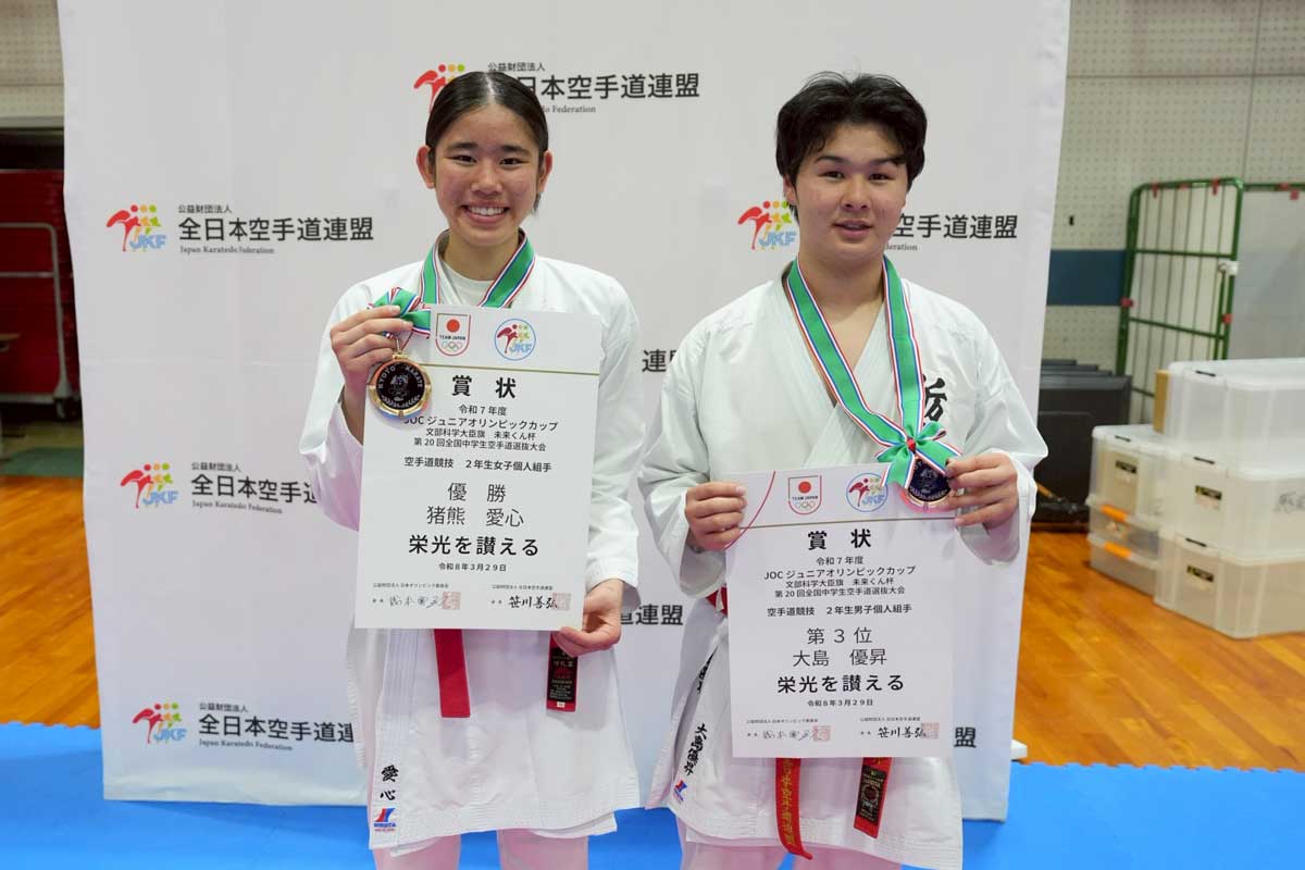 ▼ 入賞者の紹介はこちら【全中選抜2026】大会結果もわかる!まとめページはこちら↓3月28日(土)~29日(日)に京都府亀岡市の亀岡運動公園体育館で「JOCジュニアオリンピックカップ文部科学大臣旗 未来くん杯 第20回全国中学生空手道選抜...