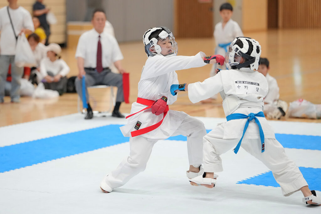 小学5・6年男子組手初級で優勝の川見理人(憲武会)