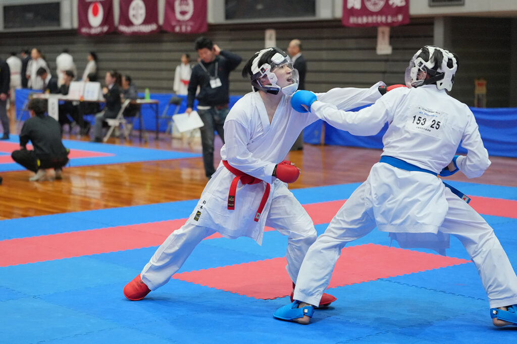 成年男子組手有段で優勝の鈴木大貴(松豪空手道研究会)