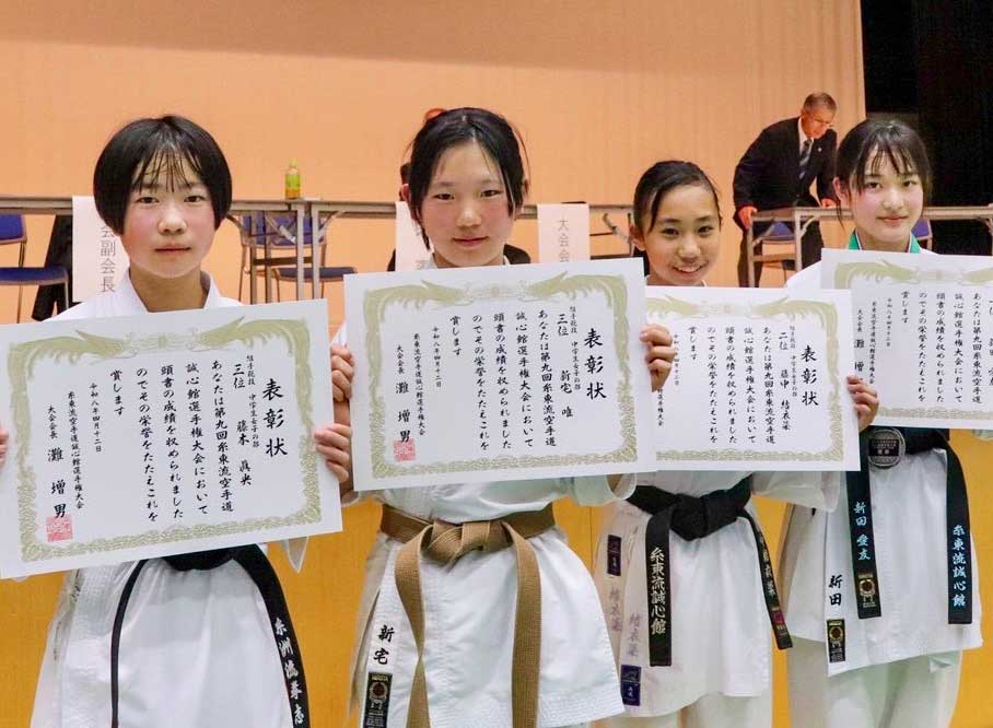 中学女子組手(新田・藤中・新宅・藤本)