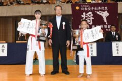 永井カンナのご両親と母校の浜松開誠館高校空手道部監督の佐野利雄先生とともに。