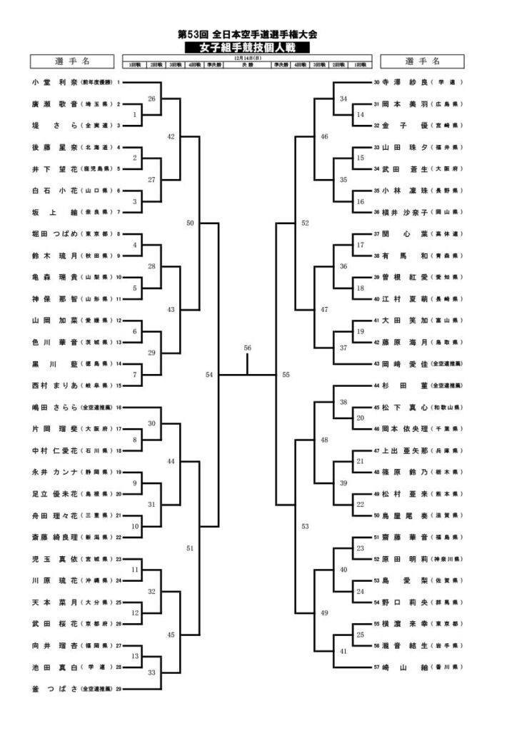 【トーナメント公開!】第53回全日本空手道選手権大会 組み合わせ表