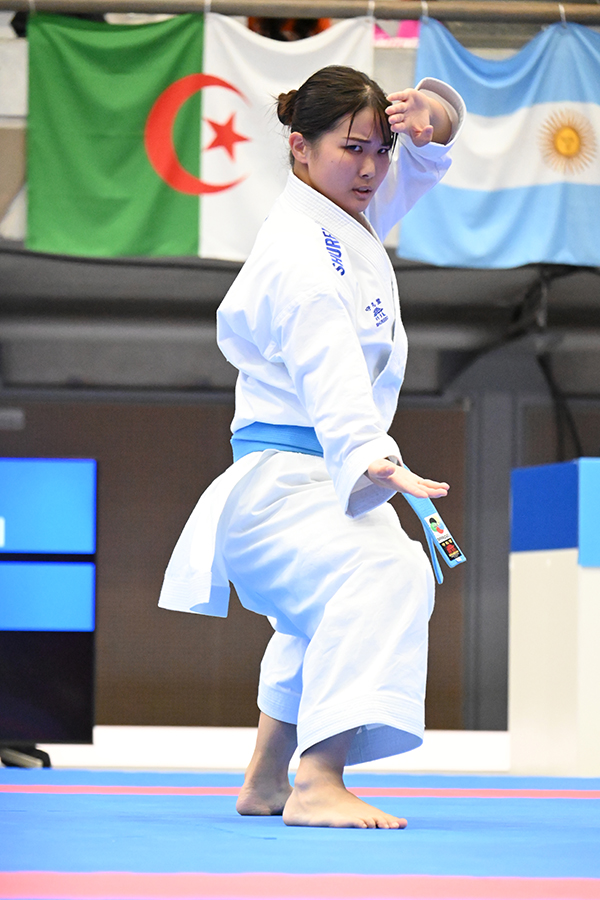 女子団体形決勝戦でアーナンを演武する日本チーム