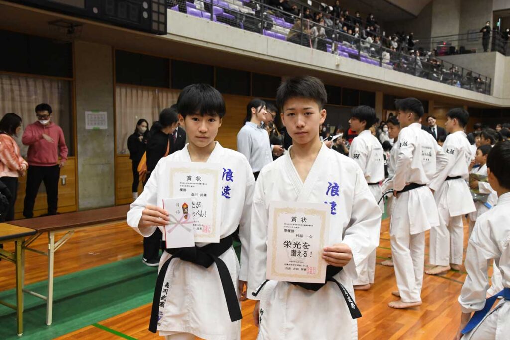 中学3年男子組手優勝・準優勝者