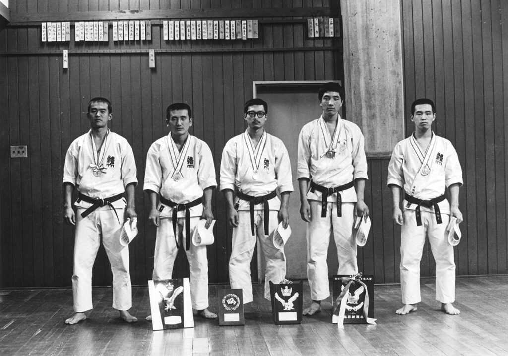 1970(昭和45)年、全日本大学選手権男子団体組手で準優勝。大学3年時の根橋選手(右から2人目・次鋒)
