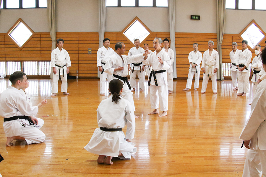 技術委員会委員長の園田玉紀先生は、「体の使い方は、基本、形、基本組手で共通しています。姿勢を正しく、軸を正しく、腰を締める、腰を開く、力はできるだけ入れない。これらのベースを意識して正しく稽古していると、無理のないかたちで自分の力を最大限発揮できる和道の空手が徐々にできるようになります。できるようになると面白くなって長く続けられます。そのためにも日頃やっていることが間違っていないか、ここでしっかりと確認をして、正しい技術をそれぞれの道場へ持ち帰り、指導に生かしてください」と参加者を激励しました。
