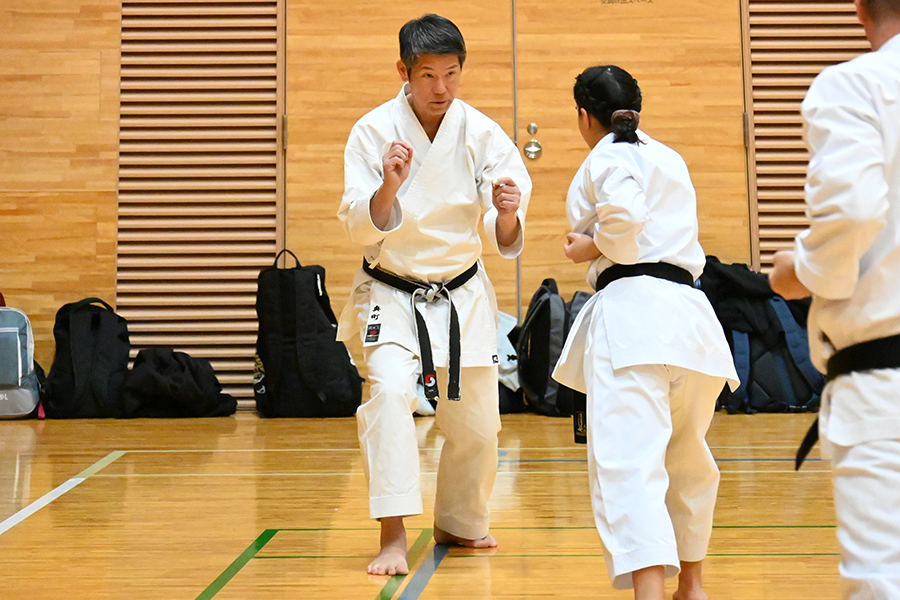 ナイハンチ。不必要な力を抜くこと。力むとスピードが遅くなる(指導・小林信隆先生)