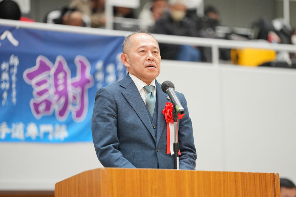 近藤彰郎 高体連空手道専門部部長が選手への激励と関係各位への感謝を述べた