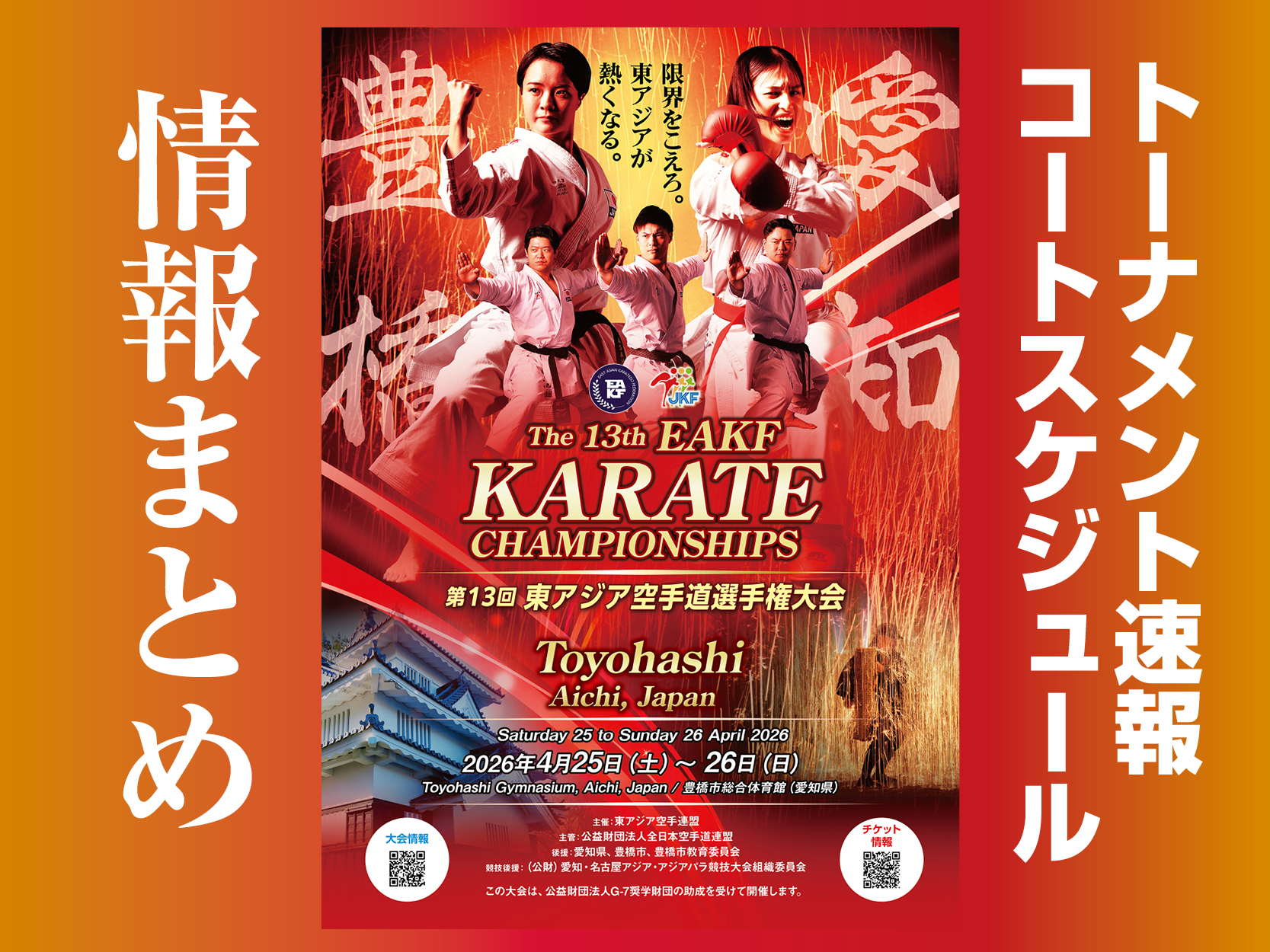 4月25〜26日、第13回東アジア空手道選手権大会が、愛知県の豊橋市総合体育館で開催。