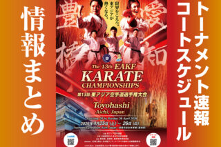 4月25日、愛知県豊橋市の豊橋市総合体育館で開幕した「第13回東アジア空手道選手権大会」。東アジア選手権の日本開催は14年ぶり。初日25日は、カデット全種目、ジュニア全種目、アンダー21全種目、シニア男女団体組手が行われました。